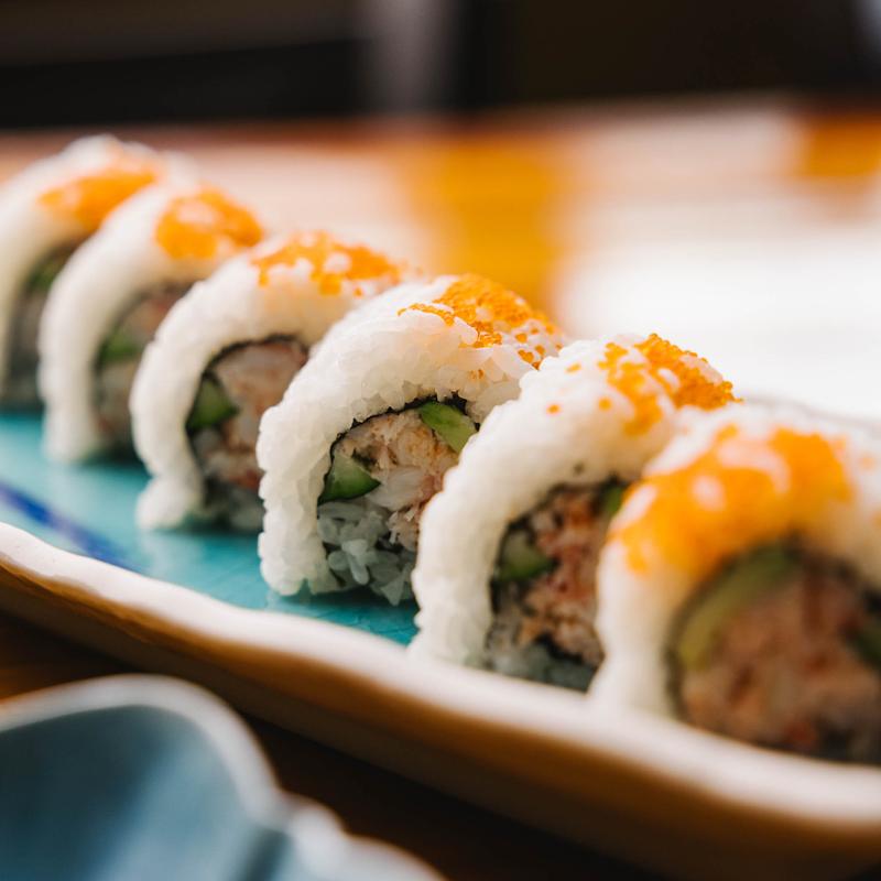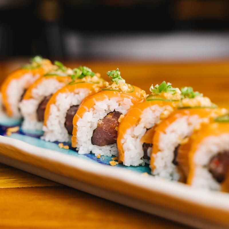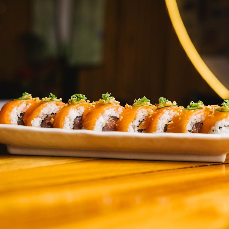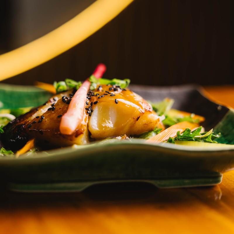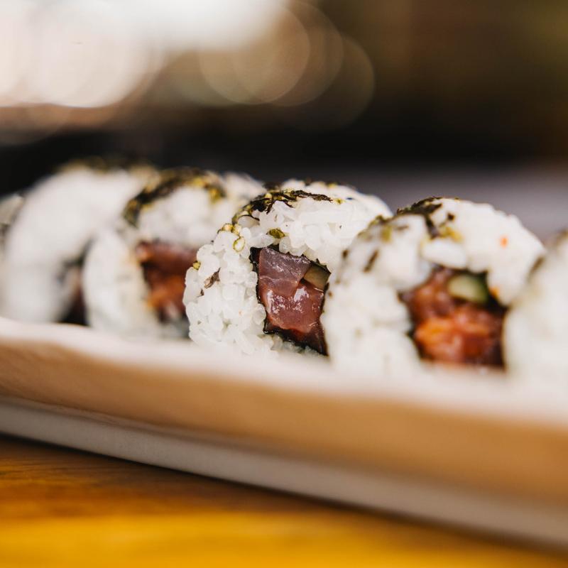 Tucked inside the Village, Mura feels like the neighborhood spot people hope to find when browsing South Kauaʻi restaurants. Lanterns glow against wood‑slat walls. Vintage prints and a kimono watch over lively tables. The bar shelves glint with sake, shochu, and whisky. Step in from the village walkway and the room settles into an easy rhythm, music low, voices warm, servers moving with unhurried grace.